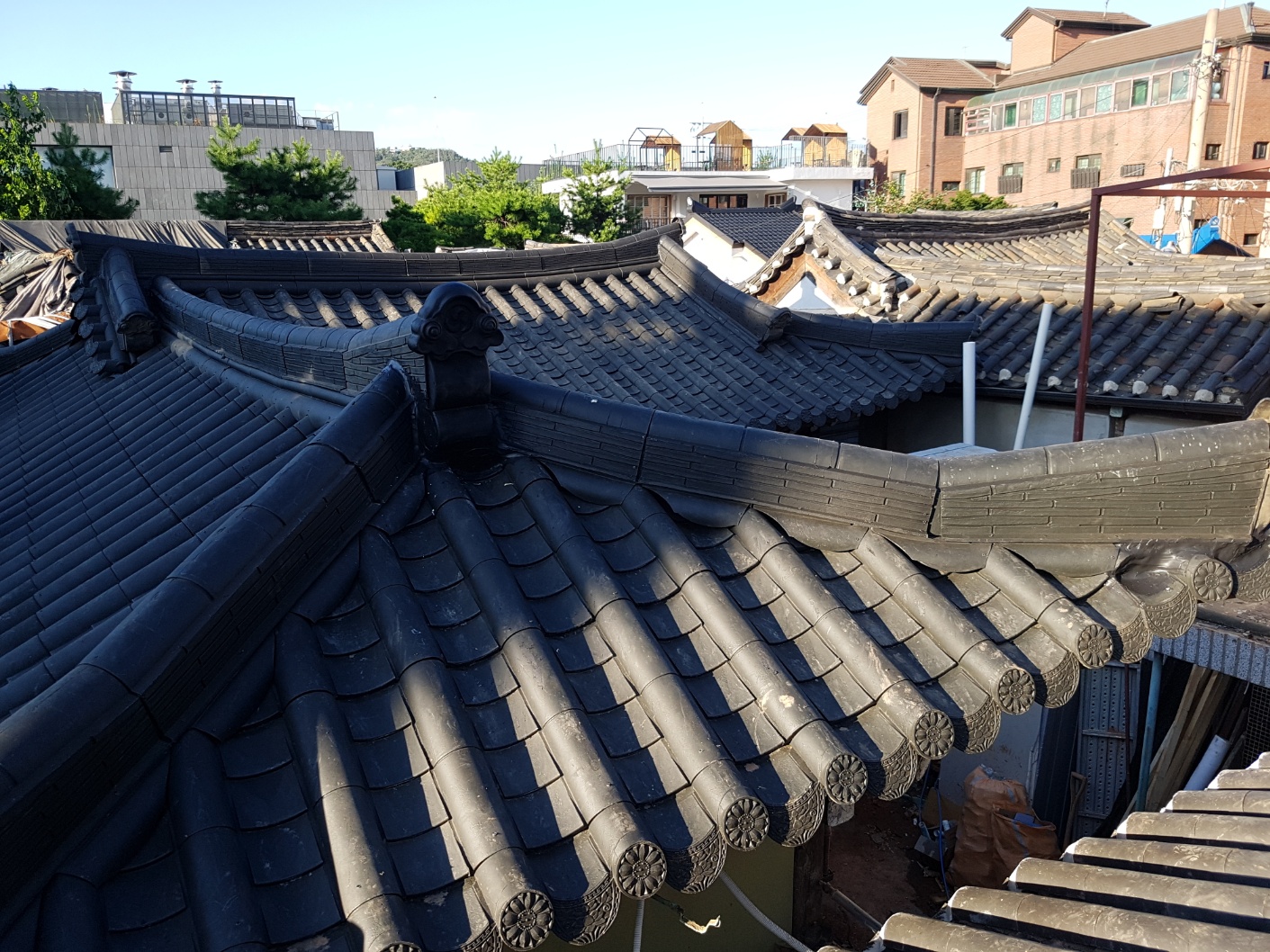 한옥주택 지붕에 천년와 플라스틱기와 지붕공사를
