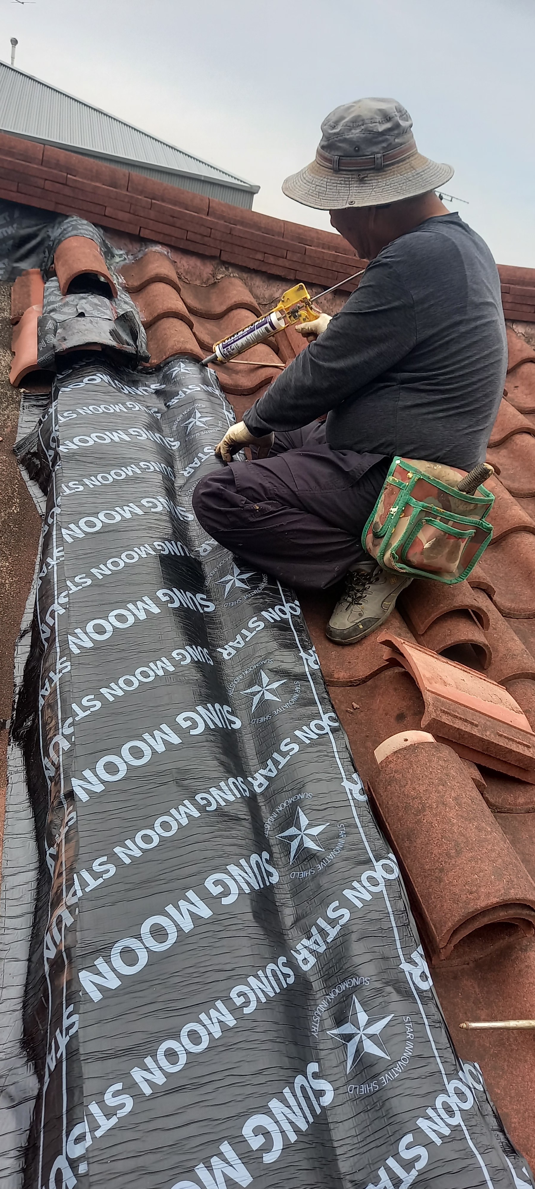 기와 이탈 문제가 발생하여 기와를 철거하고 방수시트를