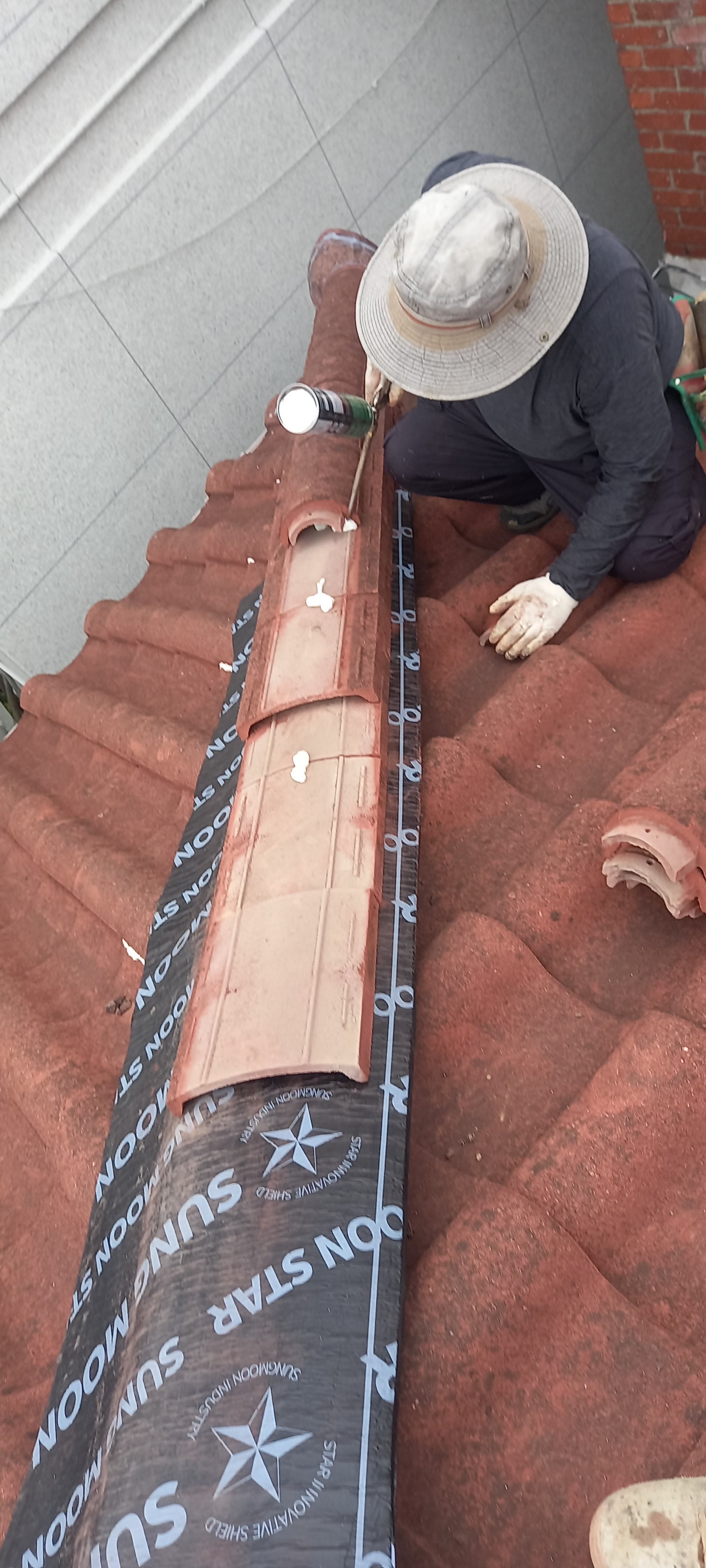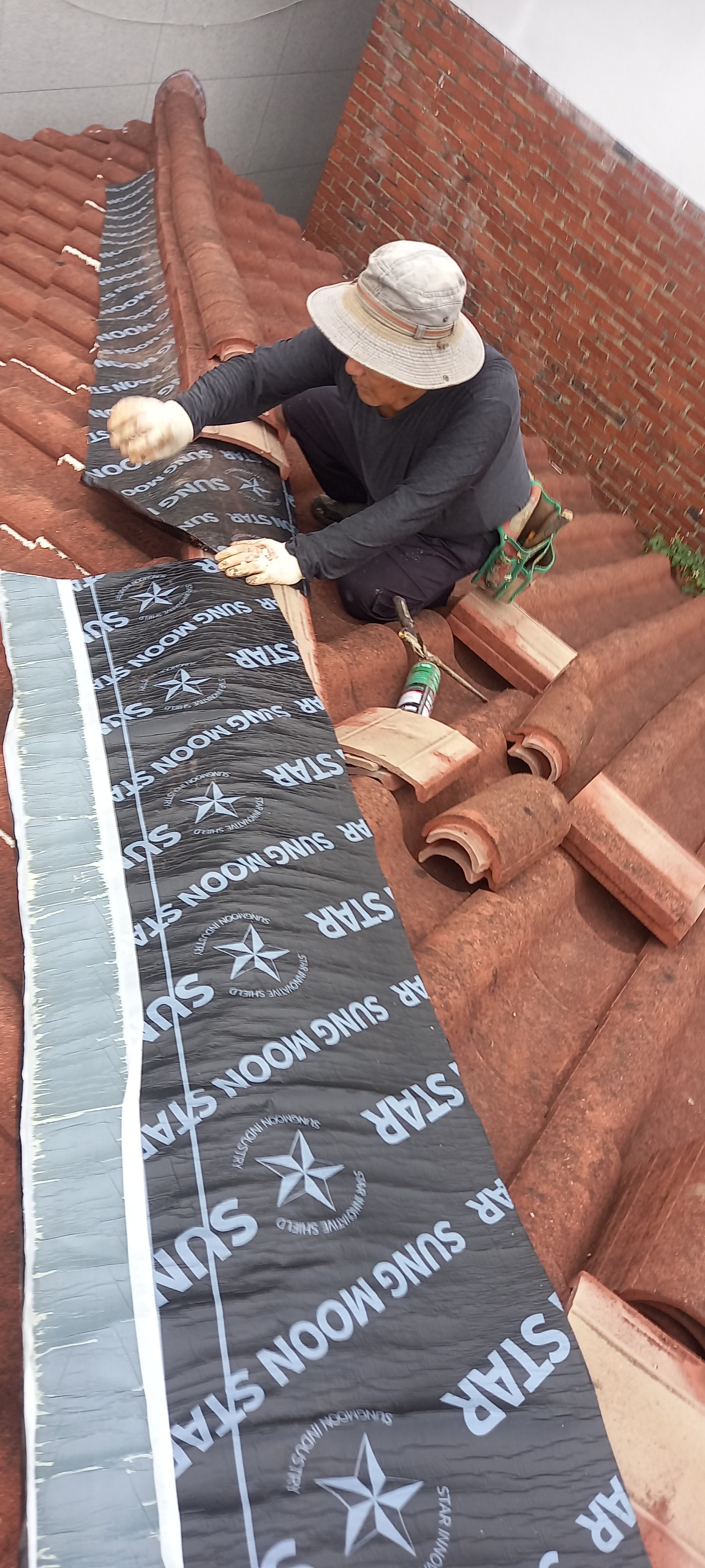 설치하고 기와재잇기 작업시에 마감재를 도포하고 기와재잇기