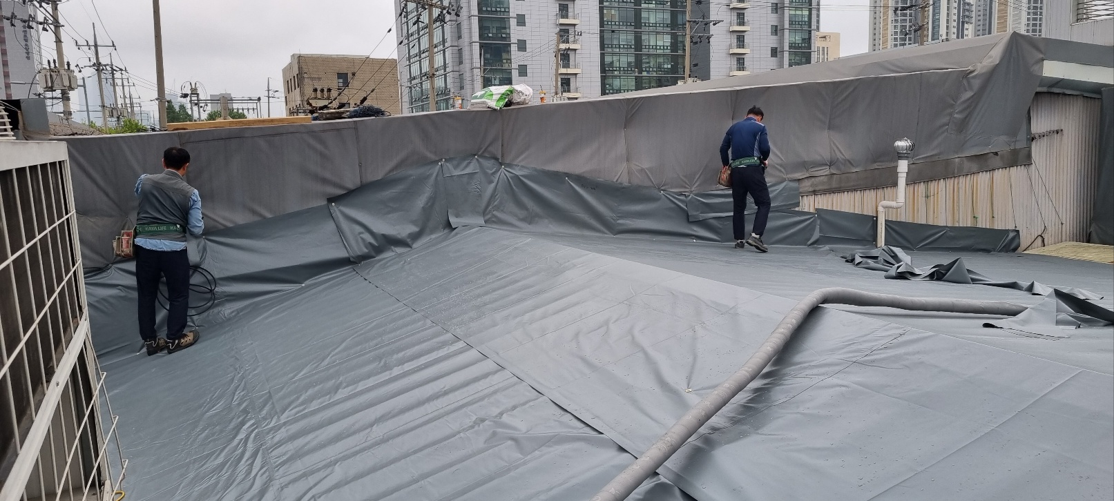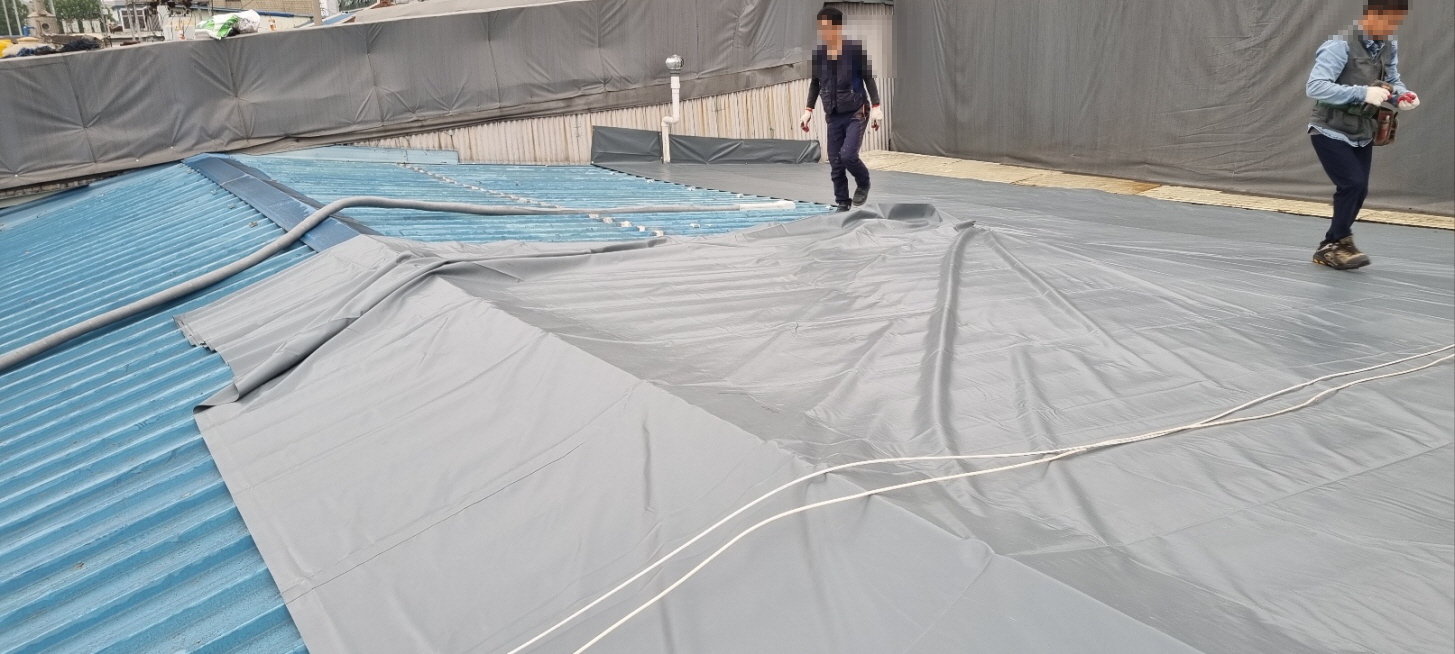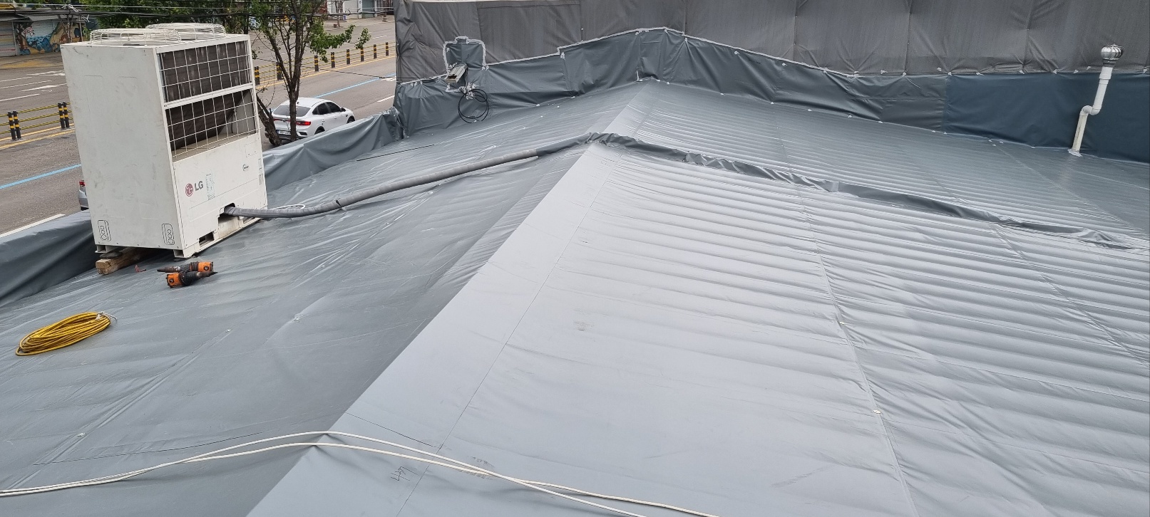 방수천막 설치 지붕방수 지붕공사 작업을 진행하였습니다.