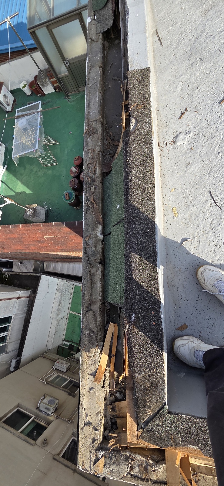 주택 옥상 난간 옥탑 지붕이 오래되어 철거하고