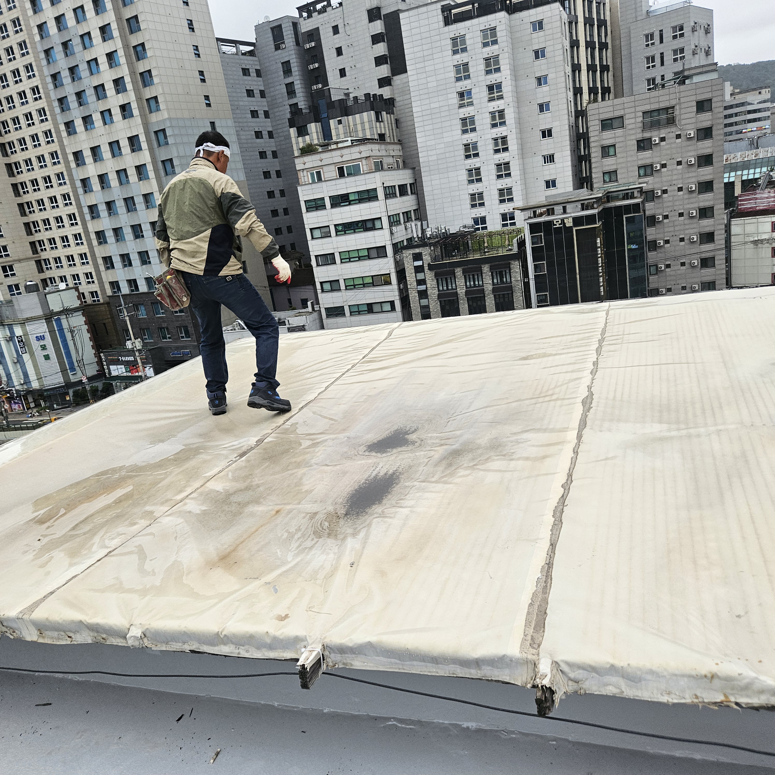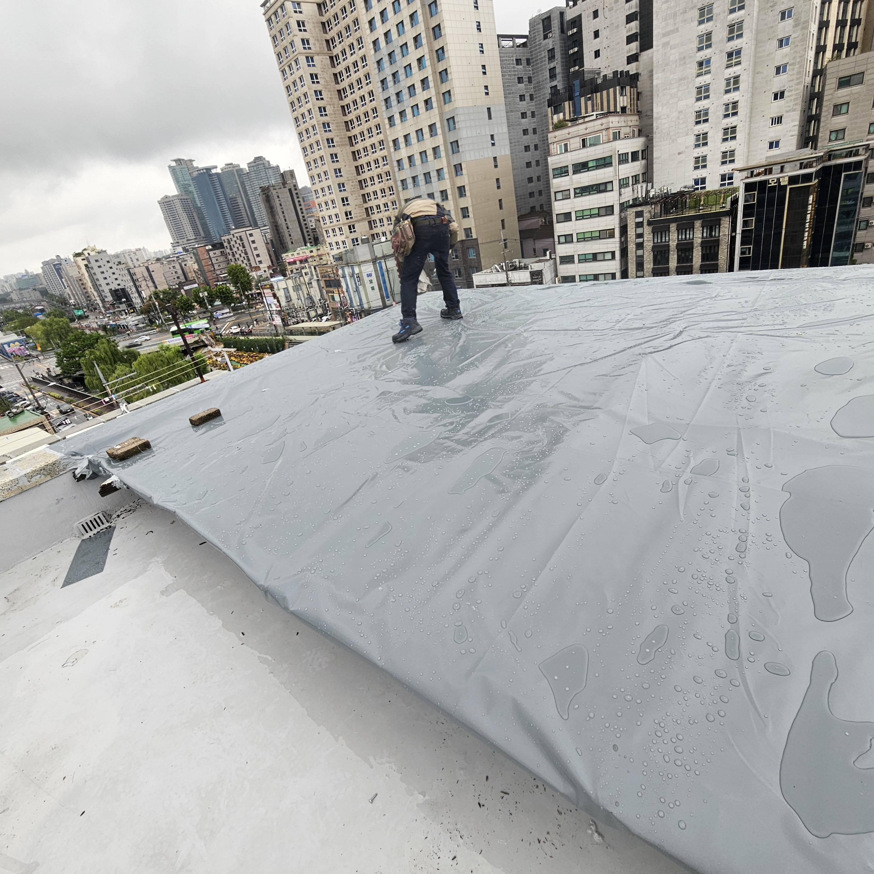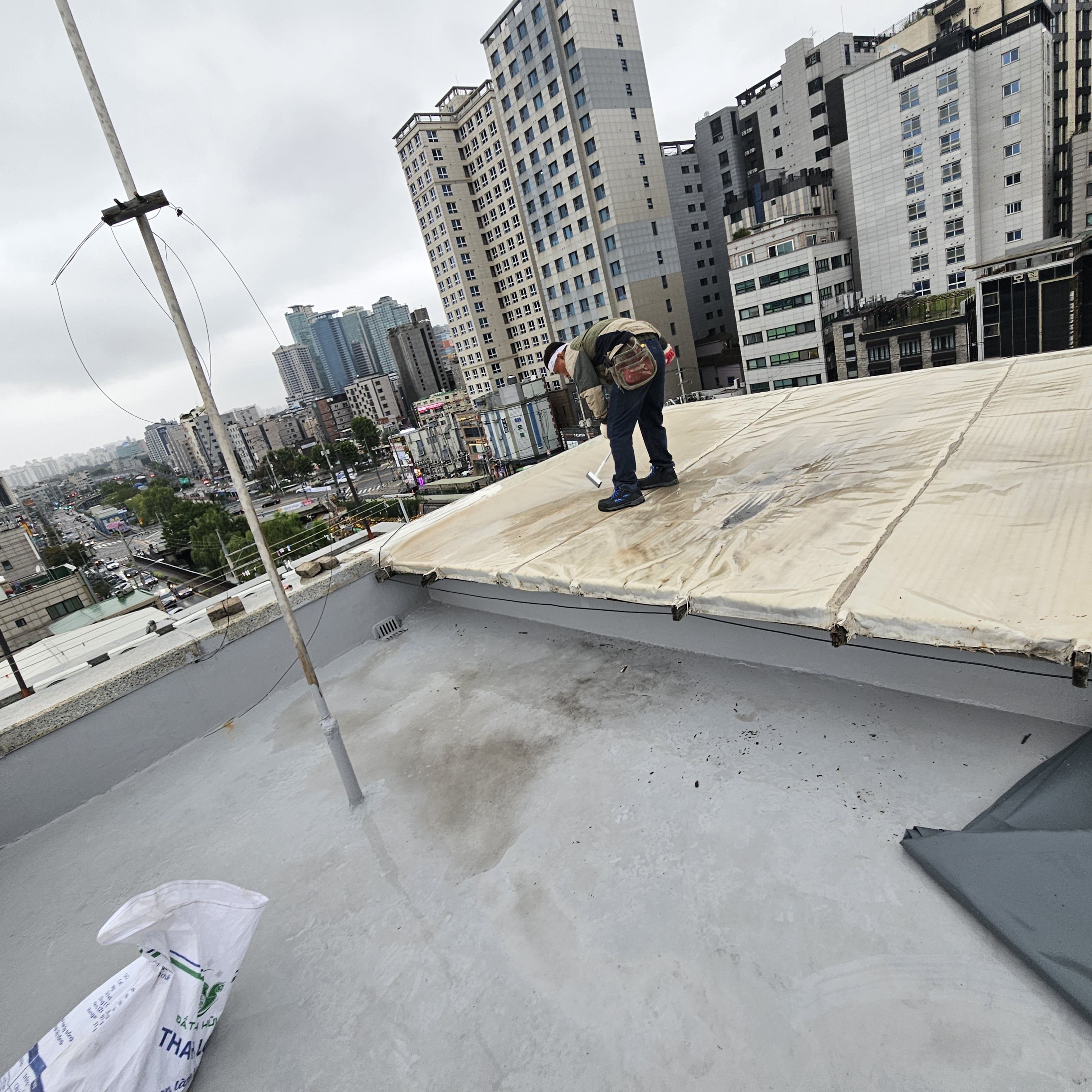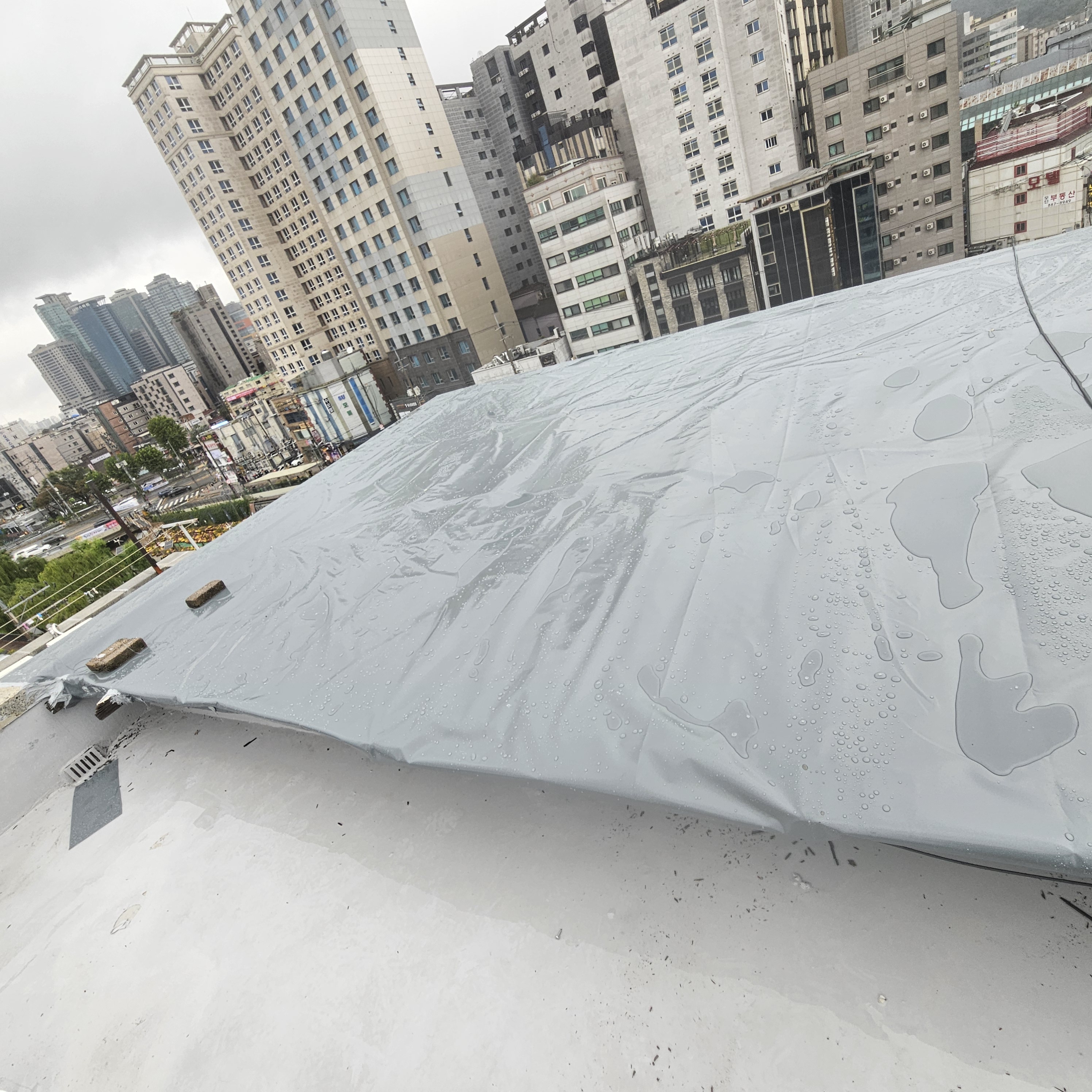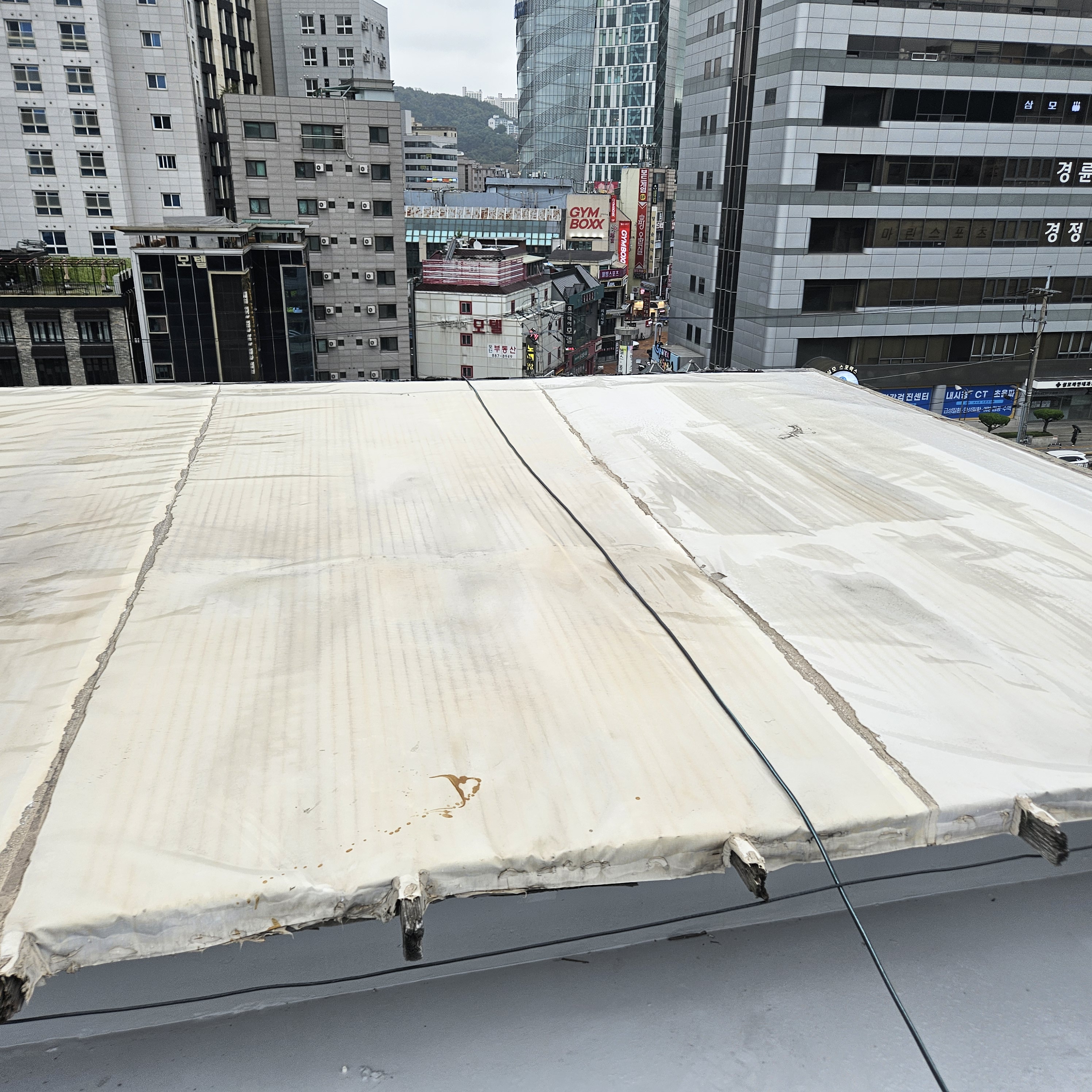 관악구 신림동 빌딩 샌드위치판넬 누수차단 타포린방수포 방수천막 지붕공사