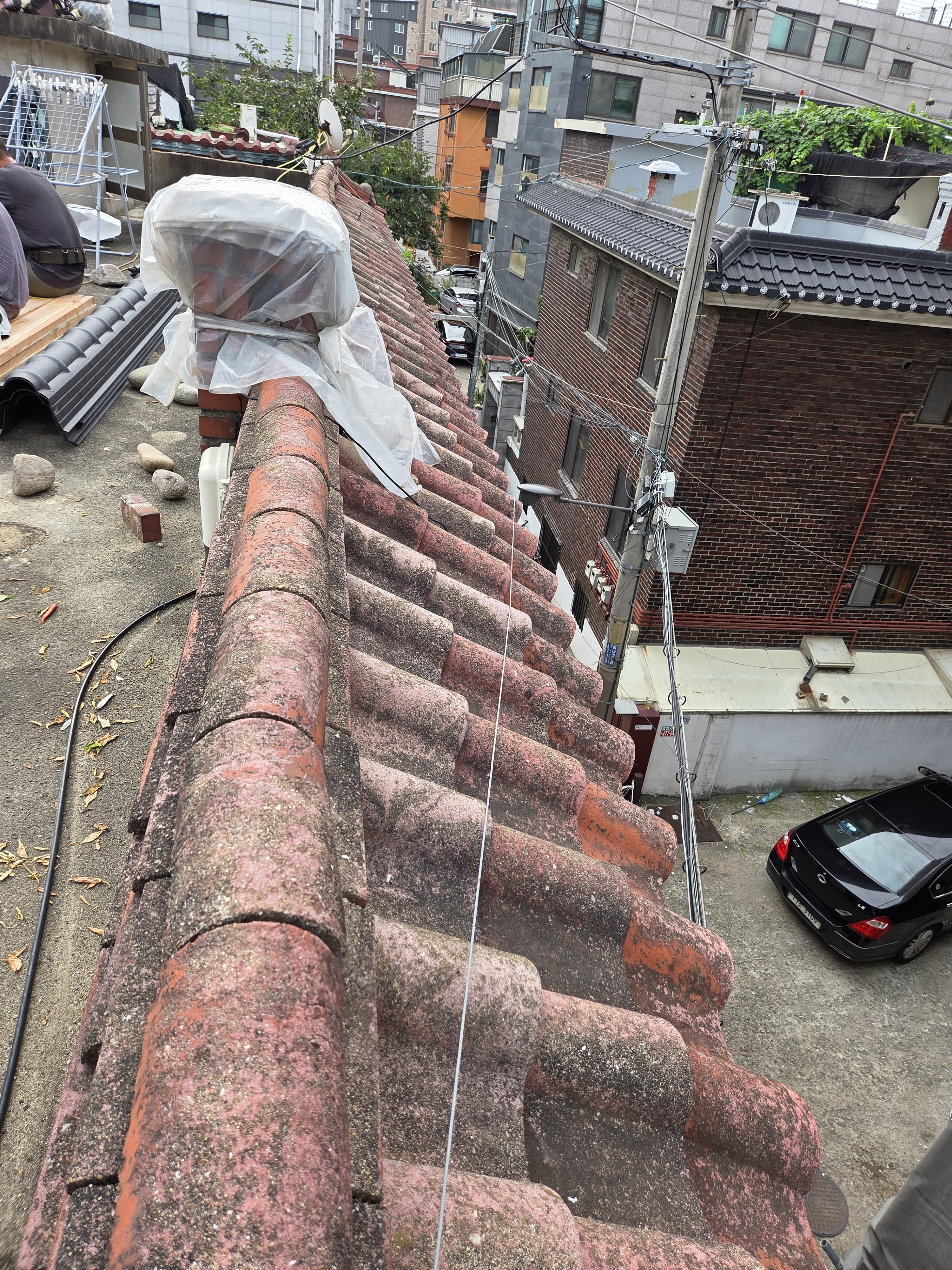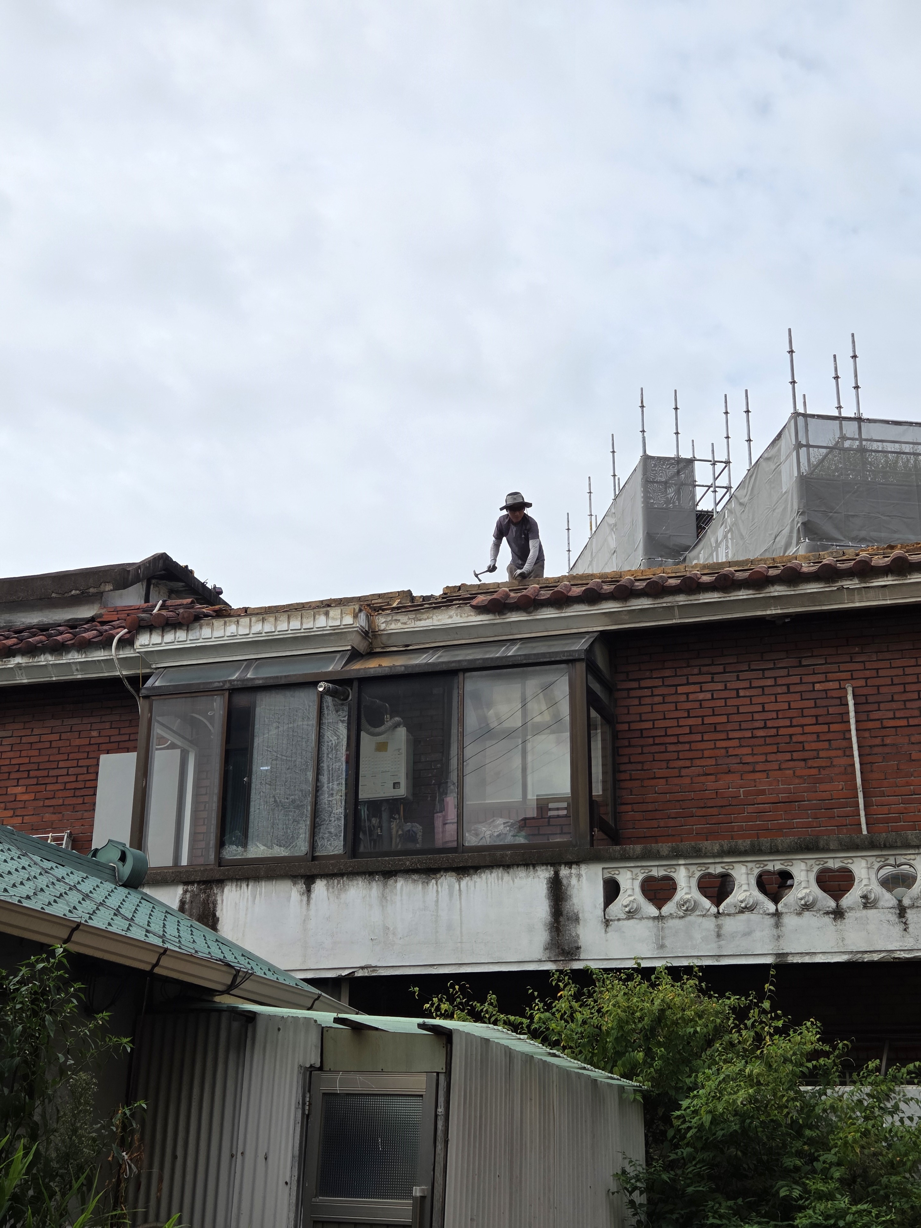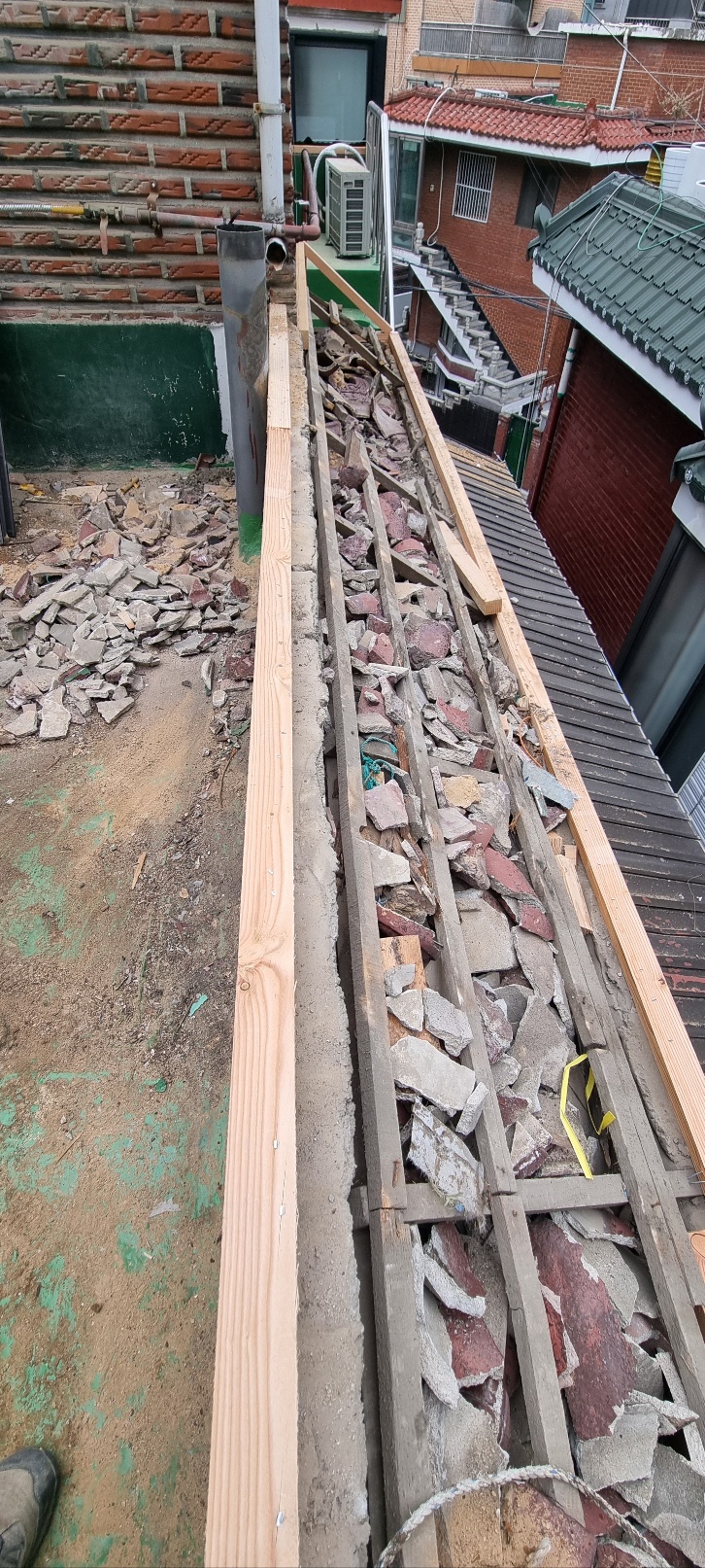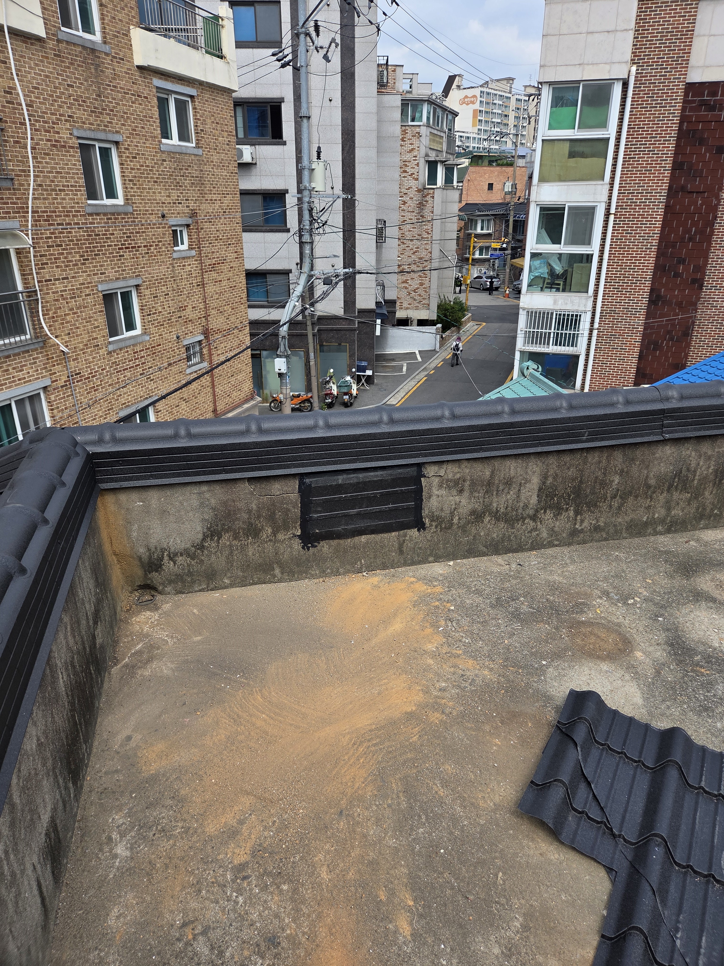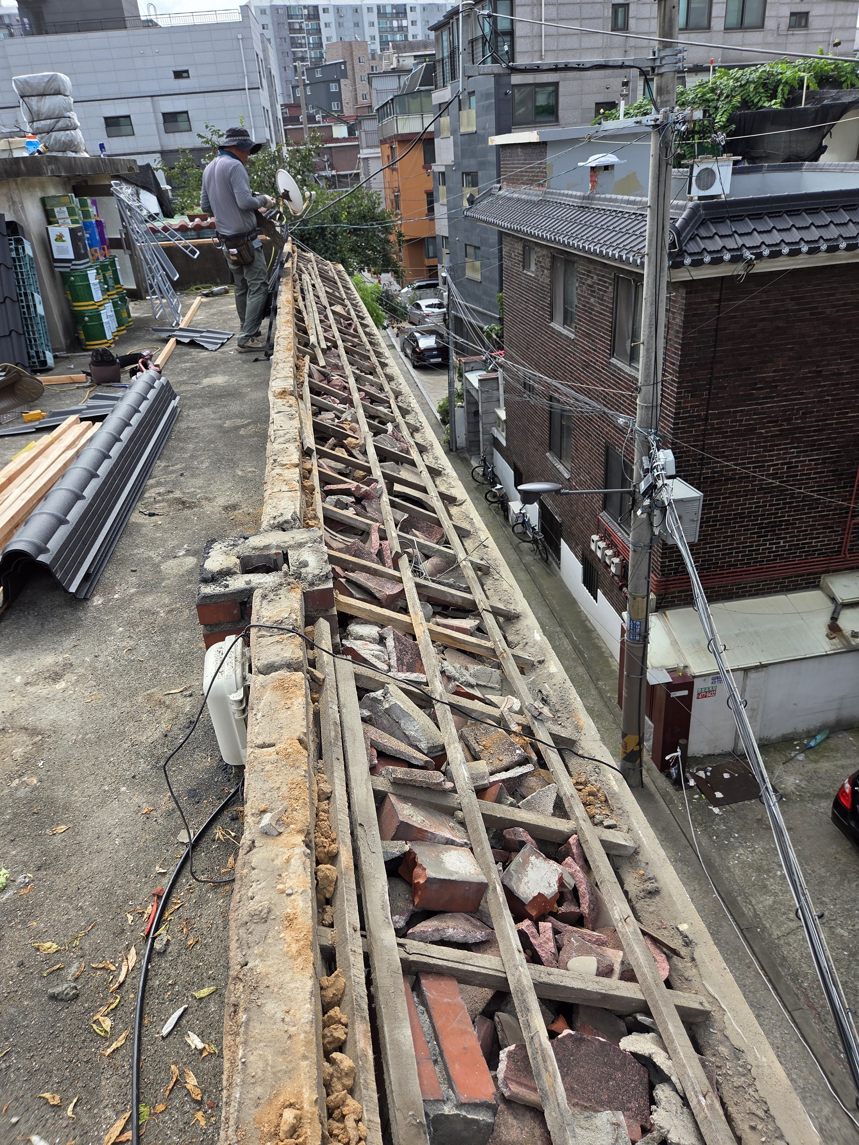 주택 옥상 난간에 설치된 기와를 철거후