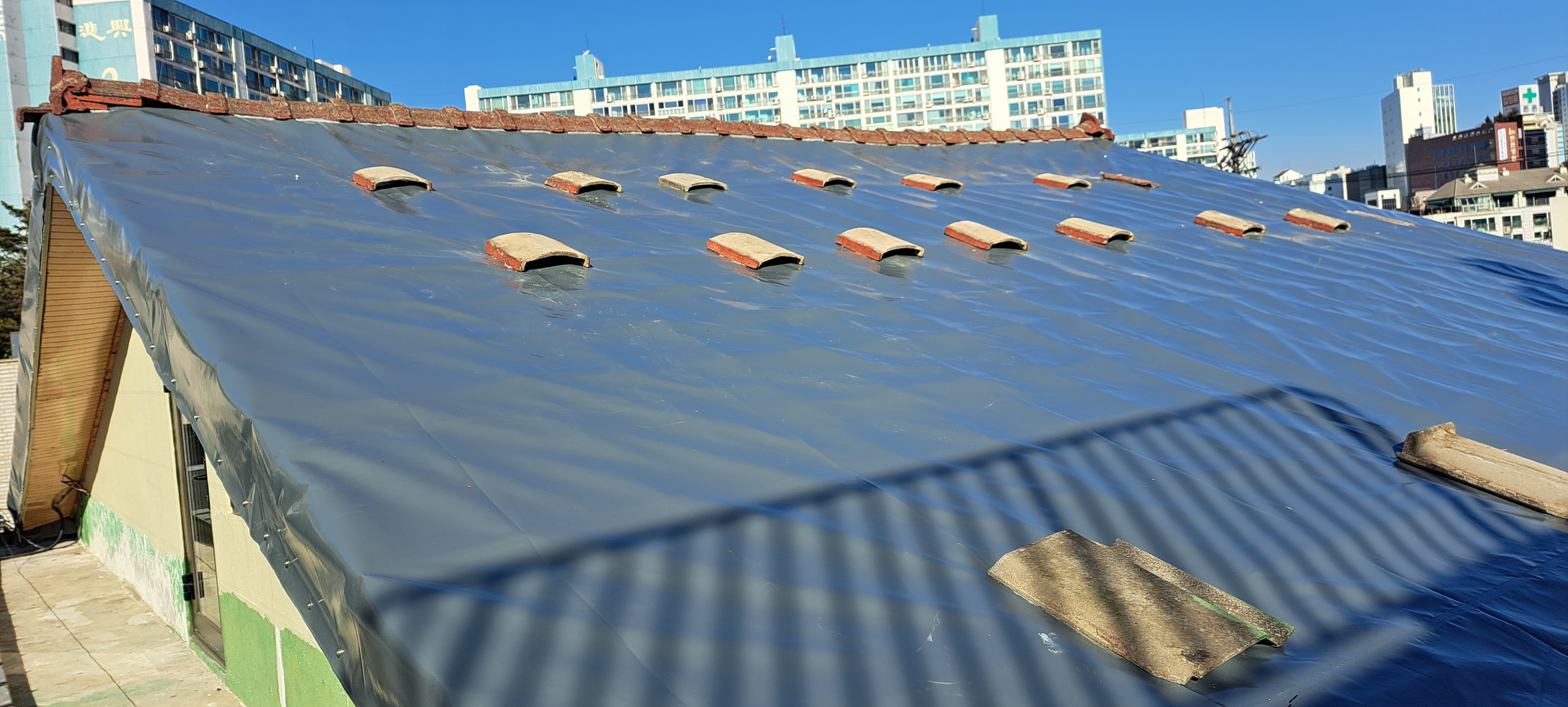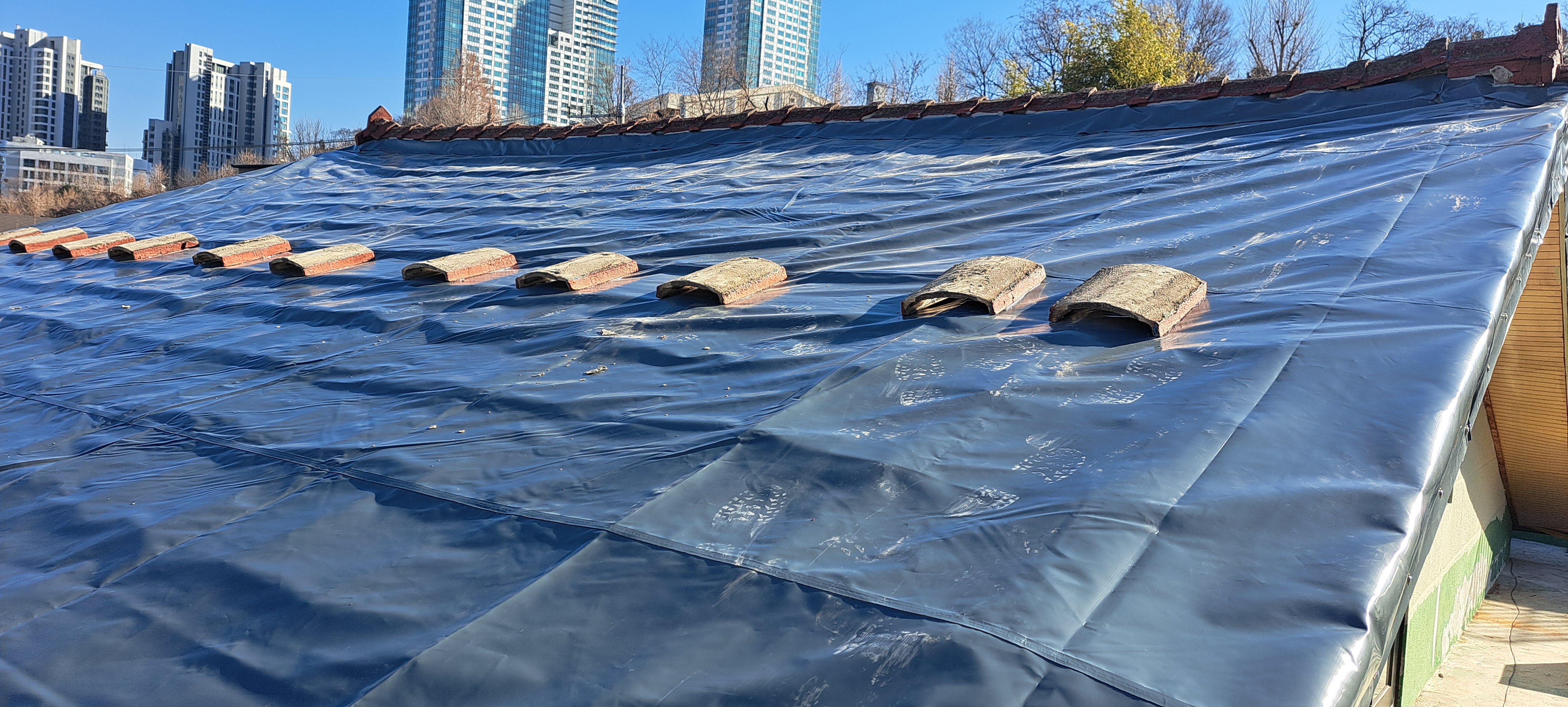 타포린방수포 방수천막 설치 지붕방수 지붕공사를 진행하였습니다.