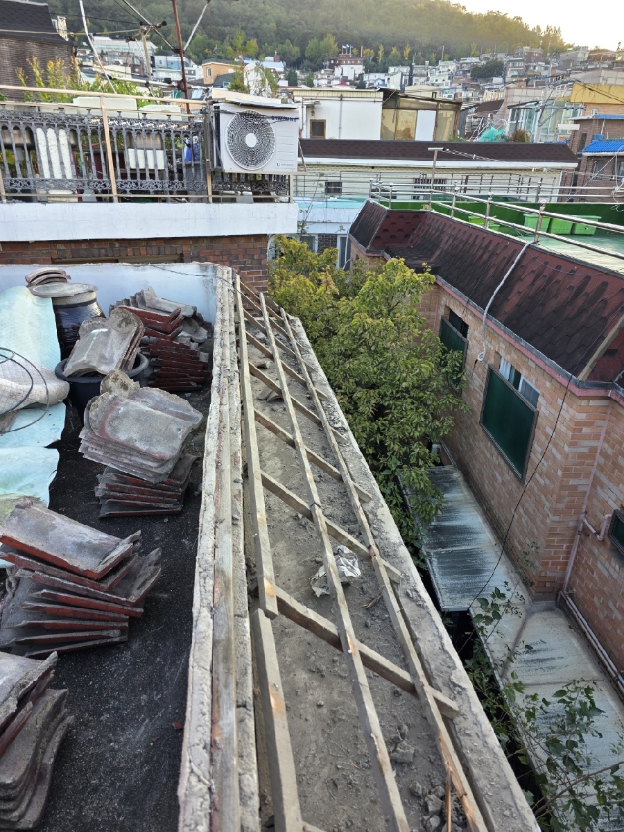 주택 옥상 난간에 설치된 시멘트기와를 철거하고