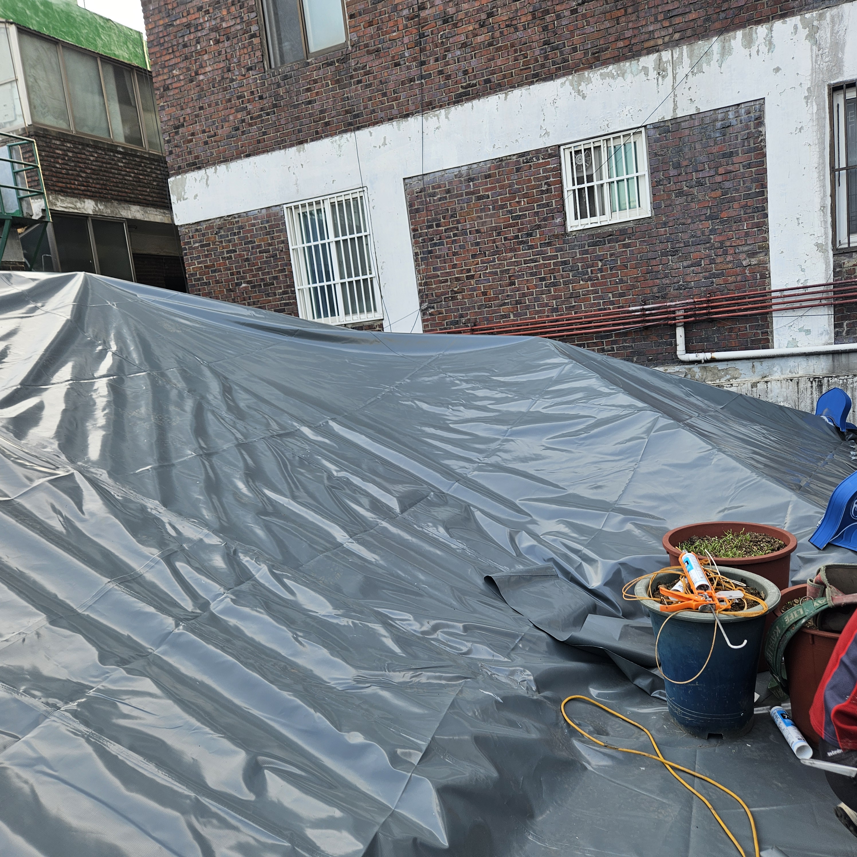 주택 지붕에서 누수가 발생하여 타포린방수포 방수천막