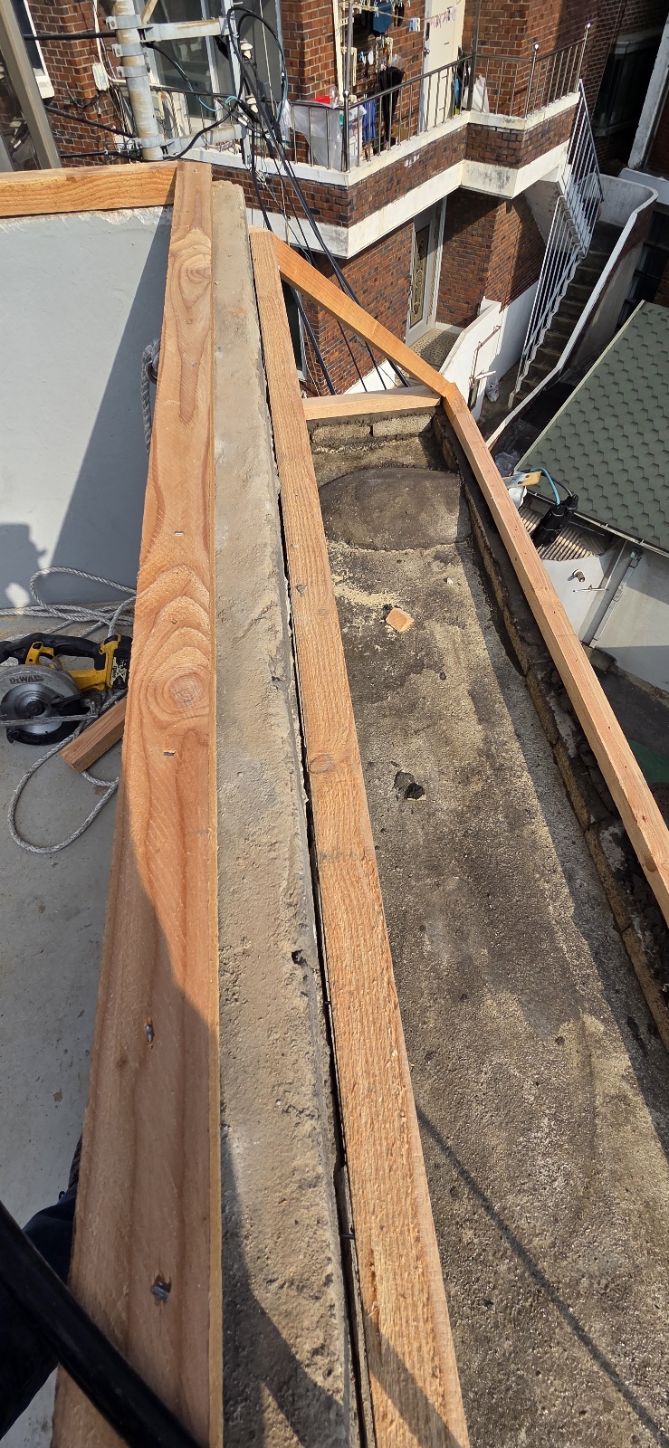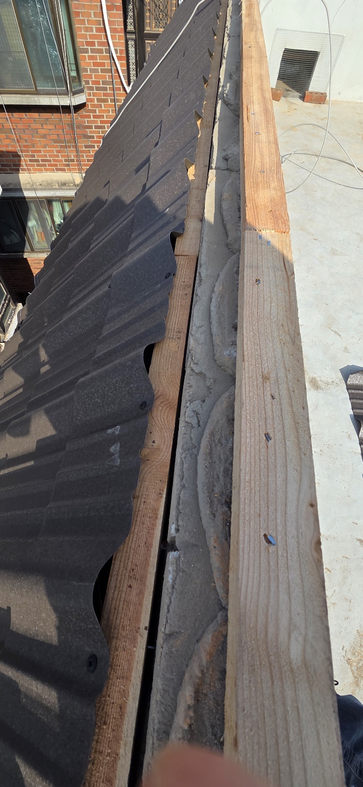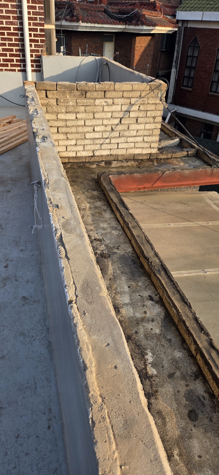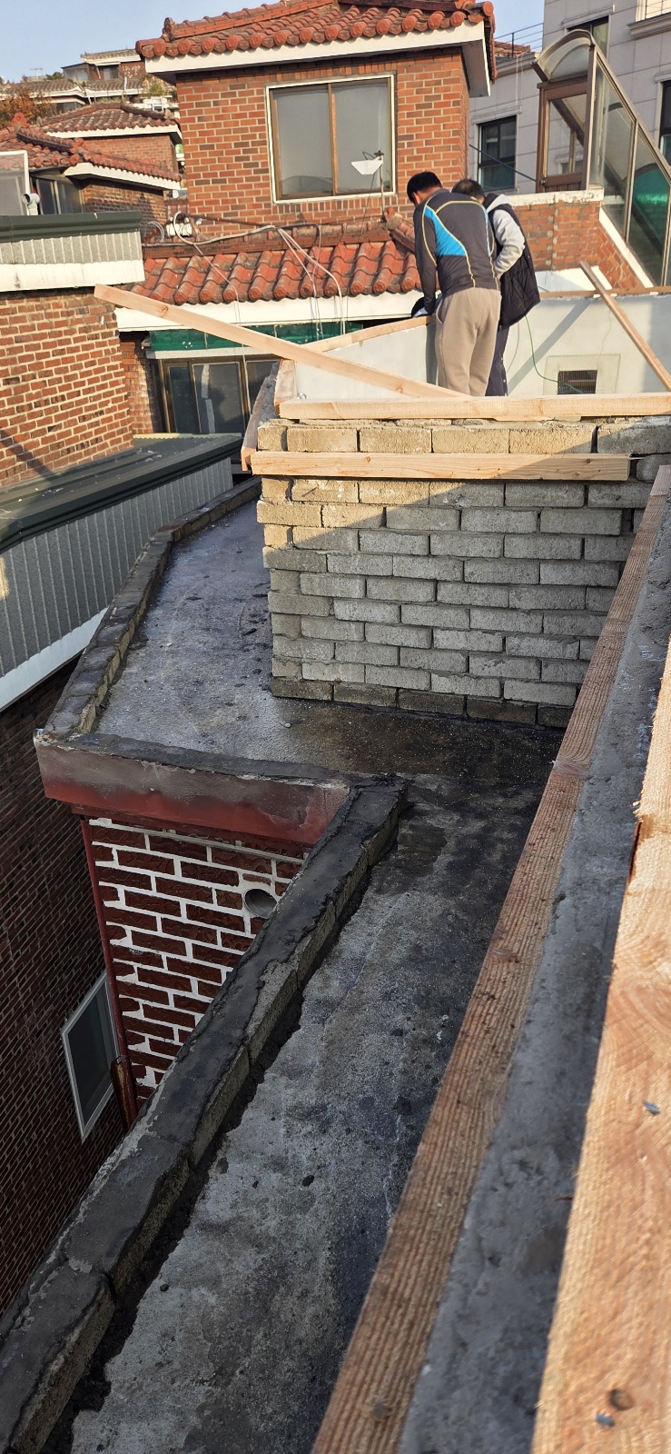 주택 옥상 난간에 설치된 기와를 철거하고