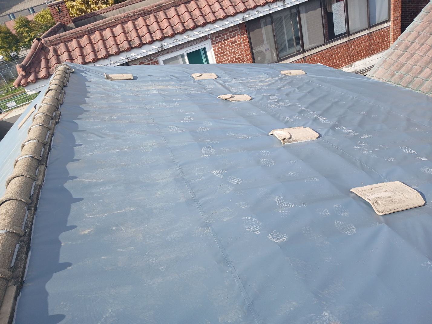 방수천막 설치 지붕수리 지붕공사를 진행하였습니다.