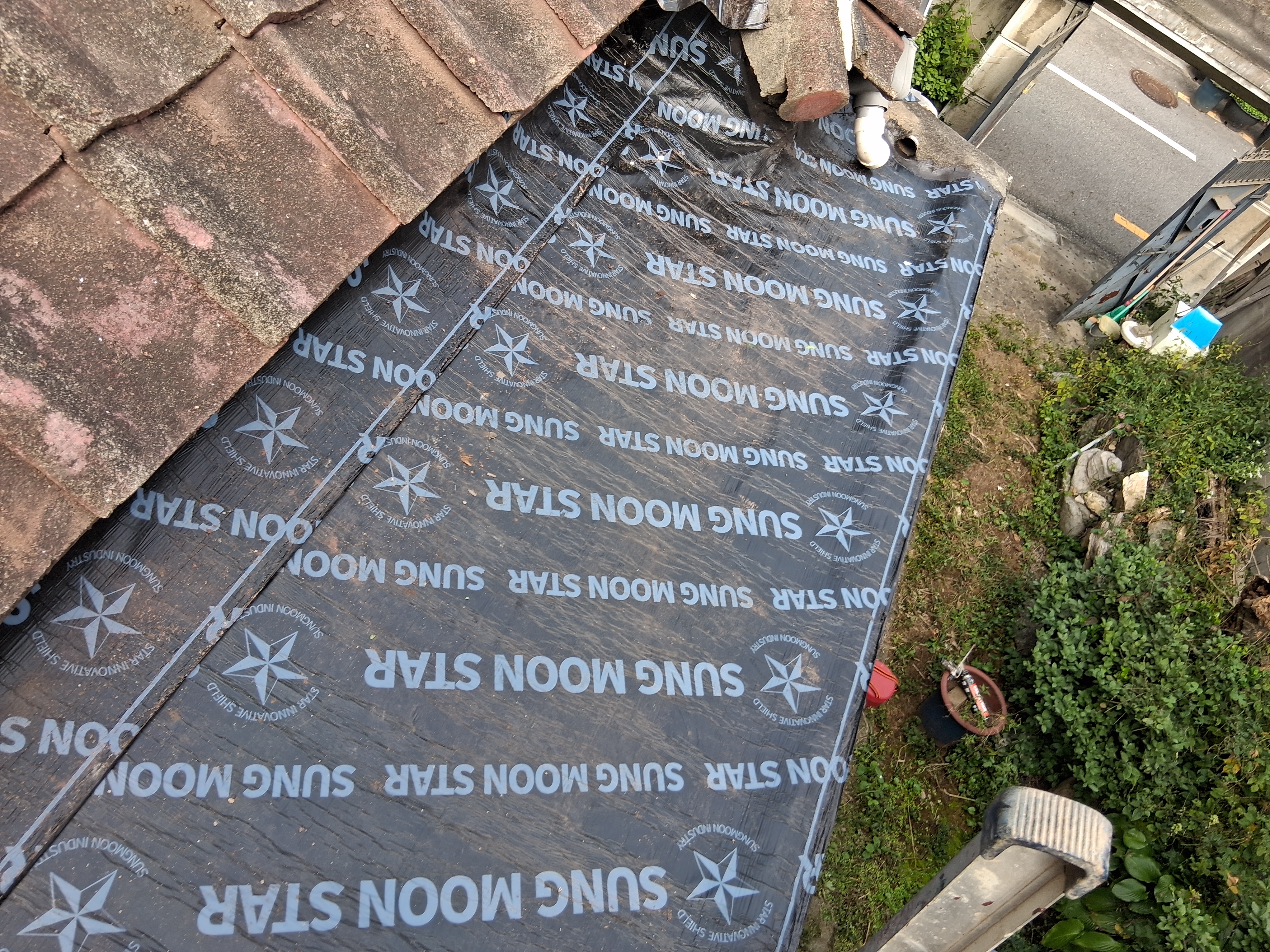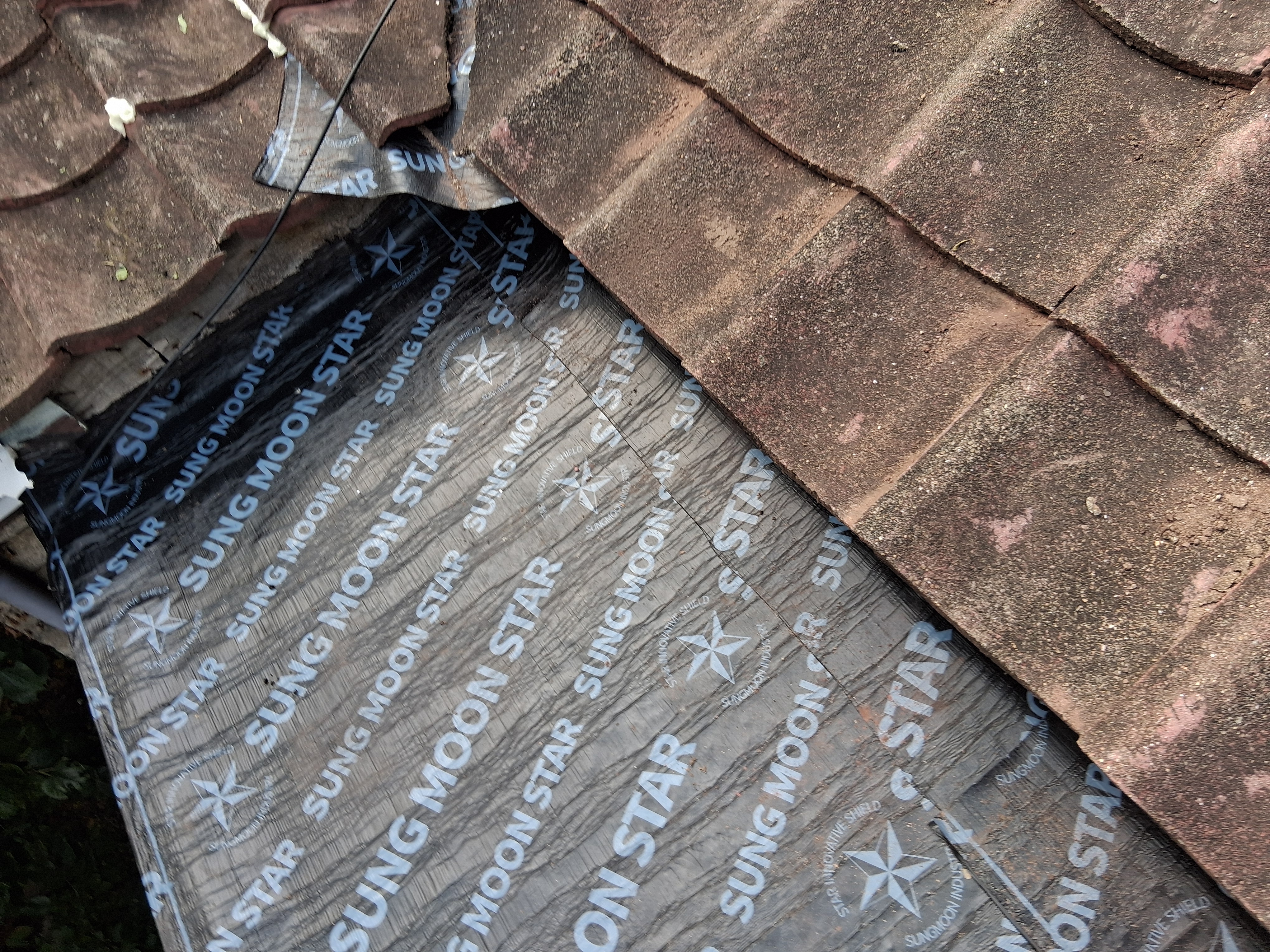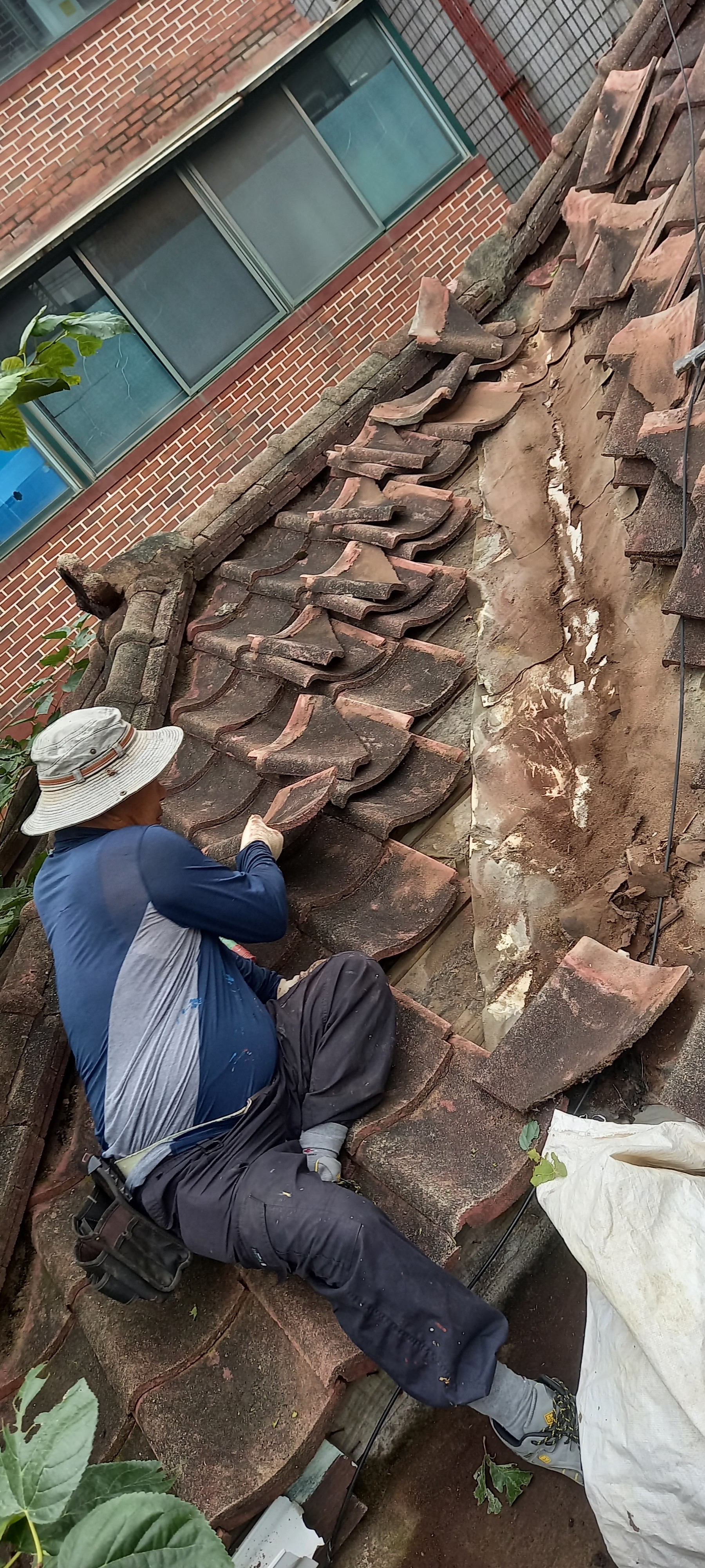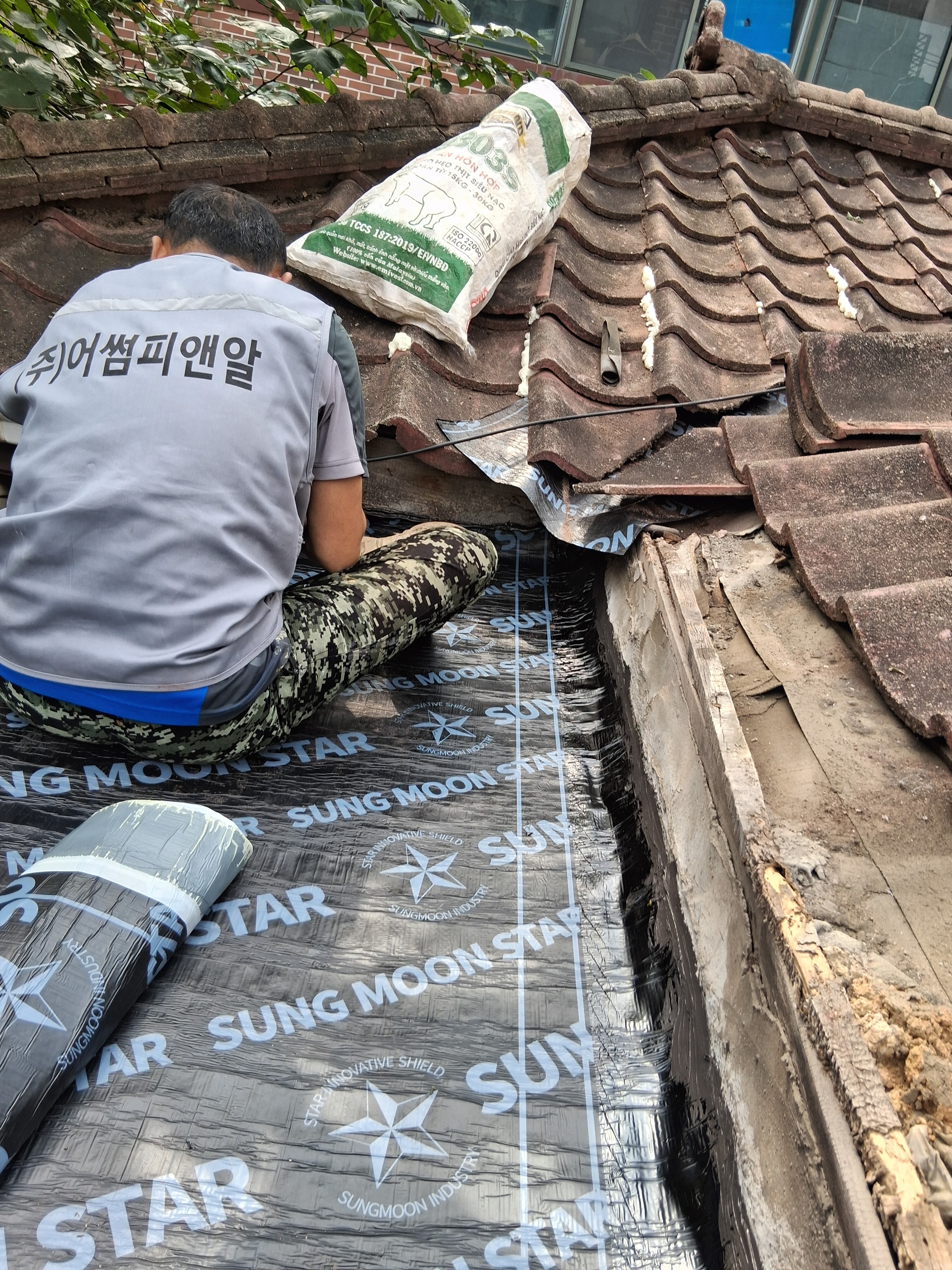 기와를 철거하고 방수시트 시공하고 기와재잇기 작업을