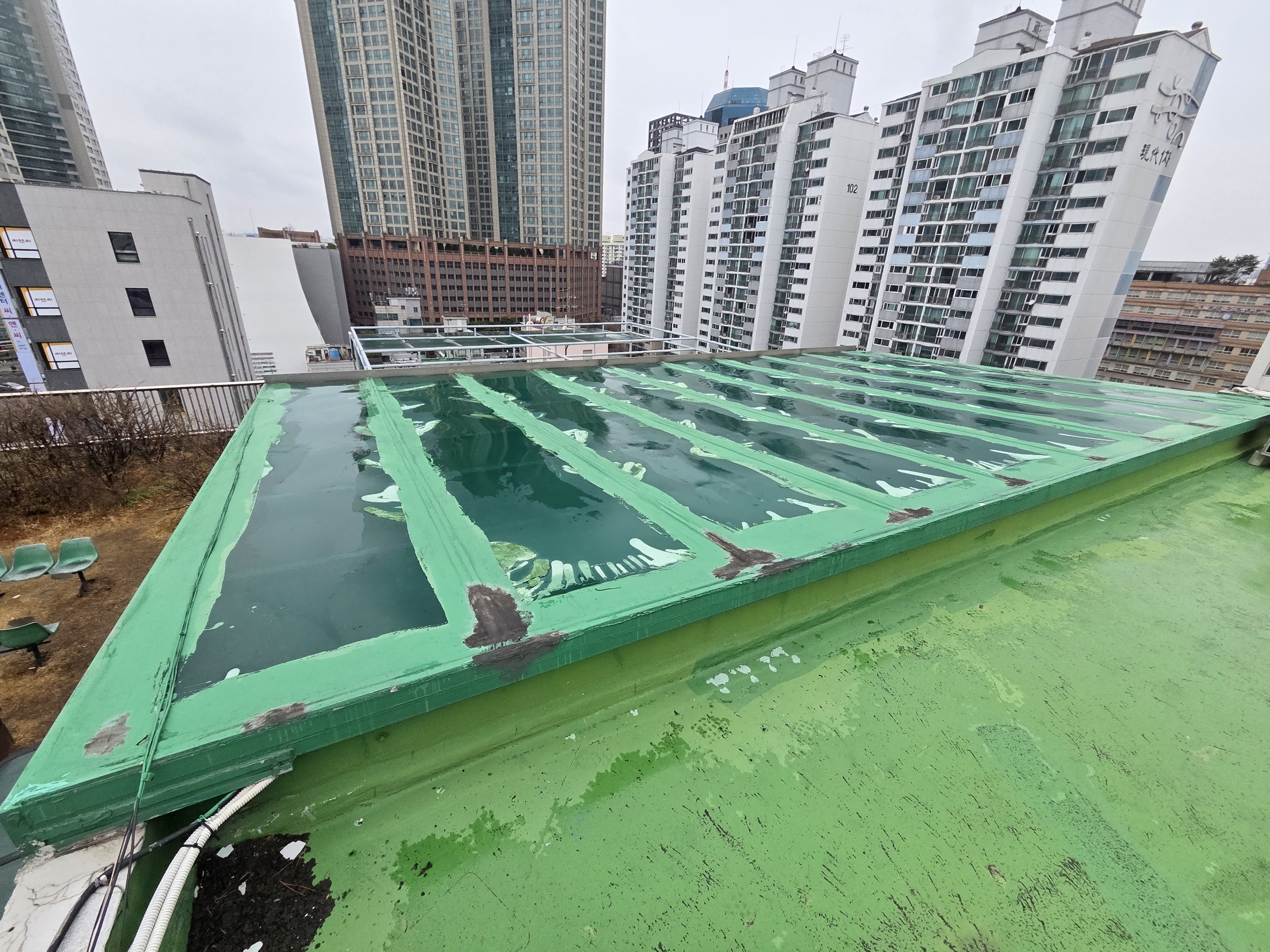 비가오면 상가건물 옥상에서 누수 현상이 발생하여
